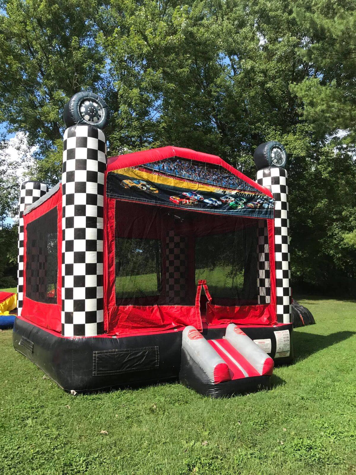 Let your little racer out with this racing themed castle inflatable, perfect for parties and summer afternoon adventures!